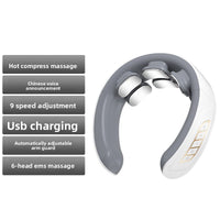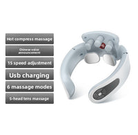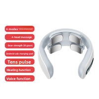 Place around neck, select intensity and heat settings. Relax for 15-20 minutes. Use daily for best results. Recharge via USB when needed.